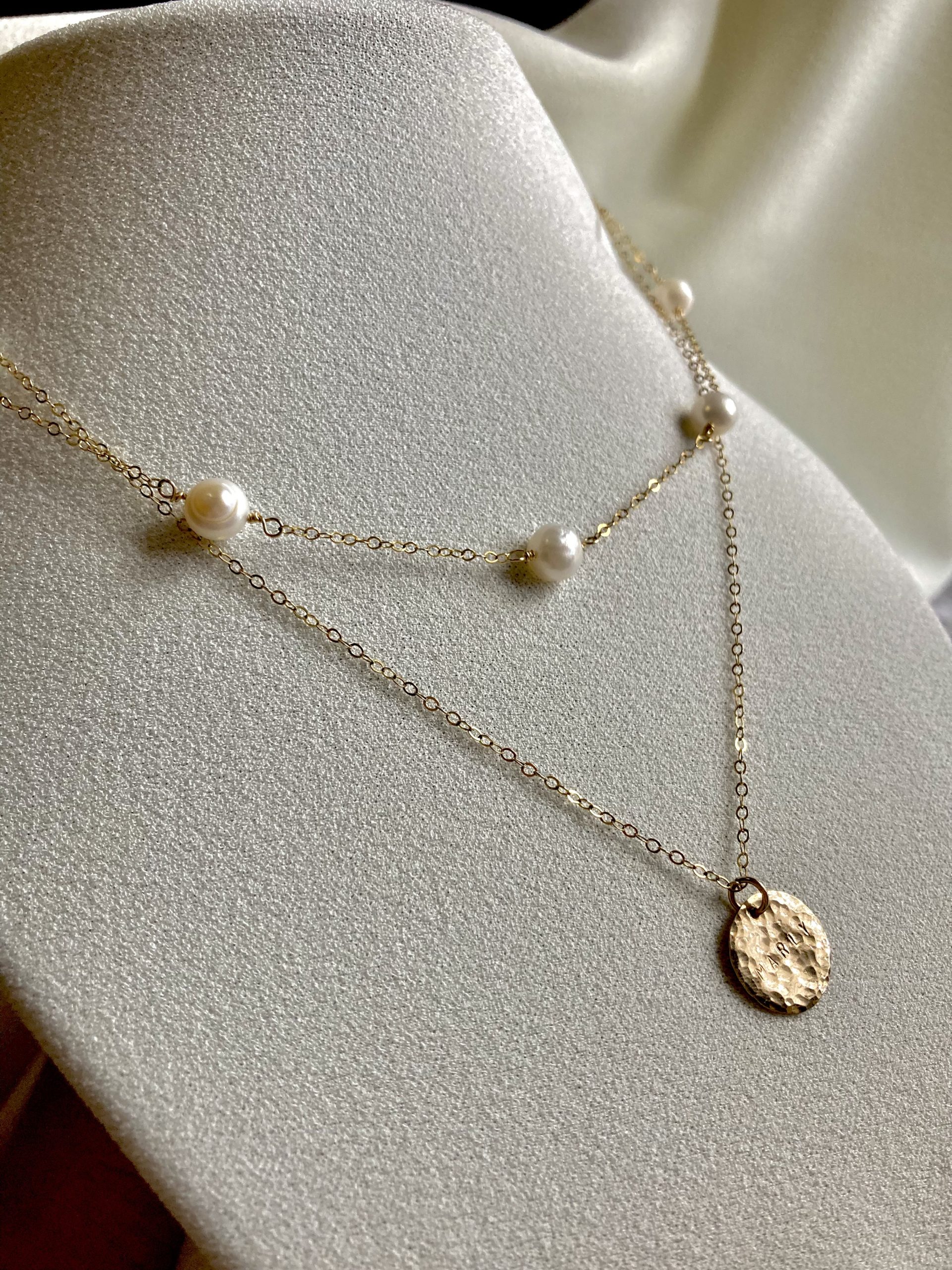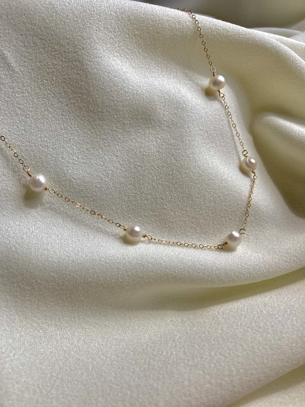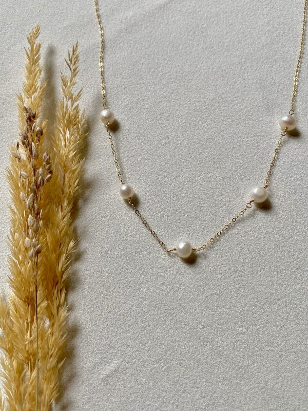 The Alana Necklace features 5 fresh water pearls, hand wire wrapped to a dainty chain. She’s elegant, classy, and beautiful… just like you (wink wink)