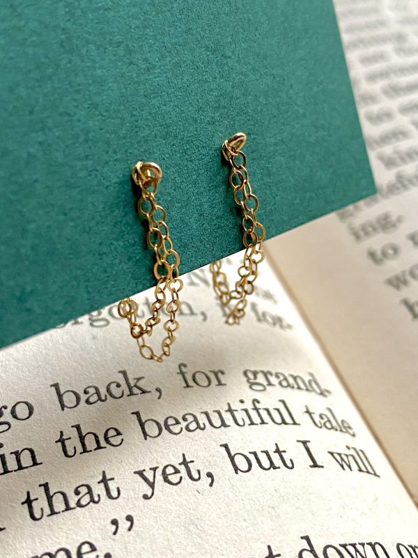 The Casey Chain Posts are AWESOME! They feature two pieces of chain that are attached to the post and the ear backing. This way the chain loops under your ear lobe creating this super cute and dainty look!